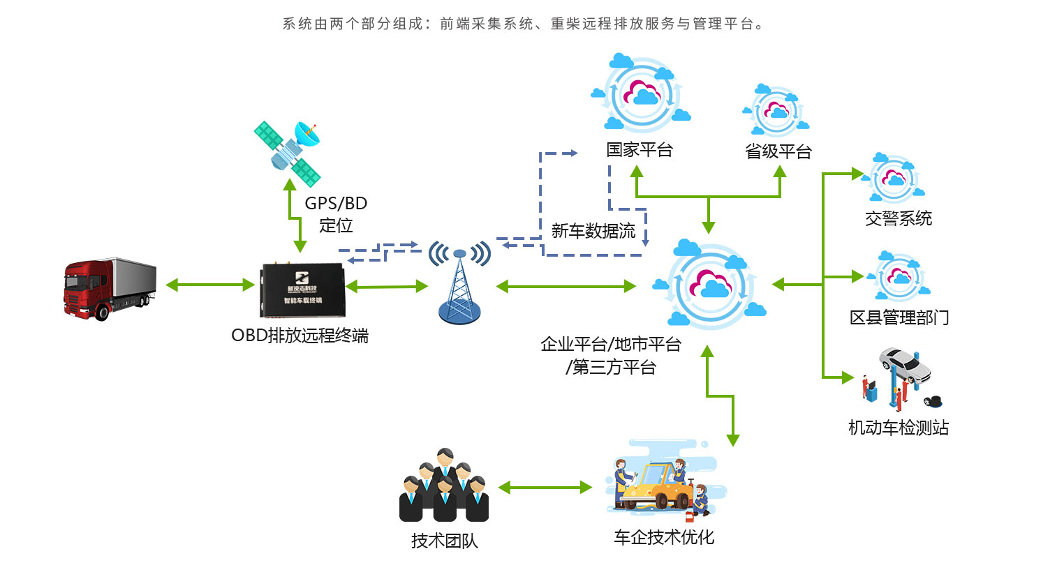 新凌志重型柴油车车载排放诊断系统,对柴油车建立全覆盖的在线监控网络,加大对高排放、高污染的重型柴油货车的监管、监控力度。建设在线监控平台,实现全覆盖、全天候的排放监控功能。
